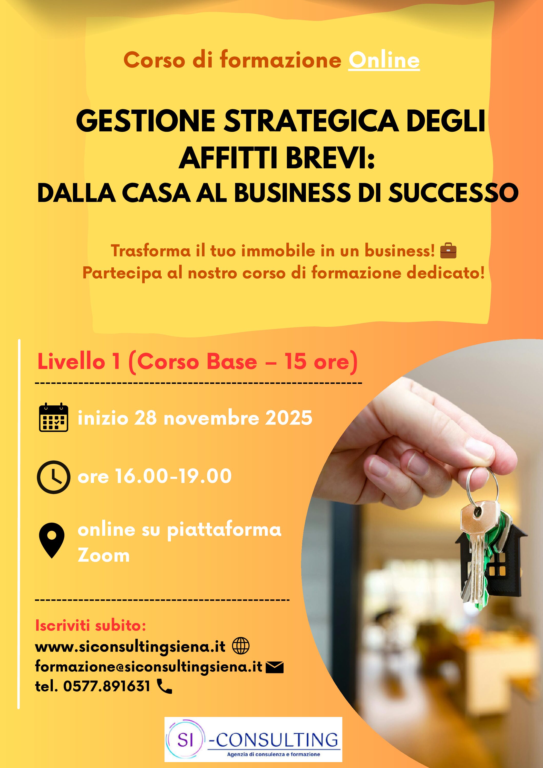 CORSO ONLINE “GESTIONE STRATEGICA DEGLI AFFITTI BREVI: DALLA CASA AL BUSINESS DI SUCCESSO”
